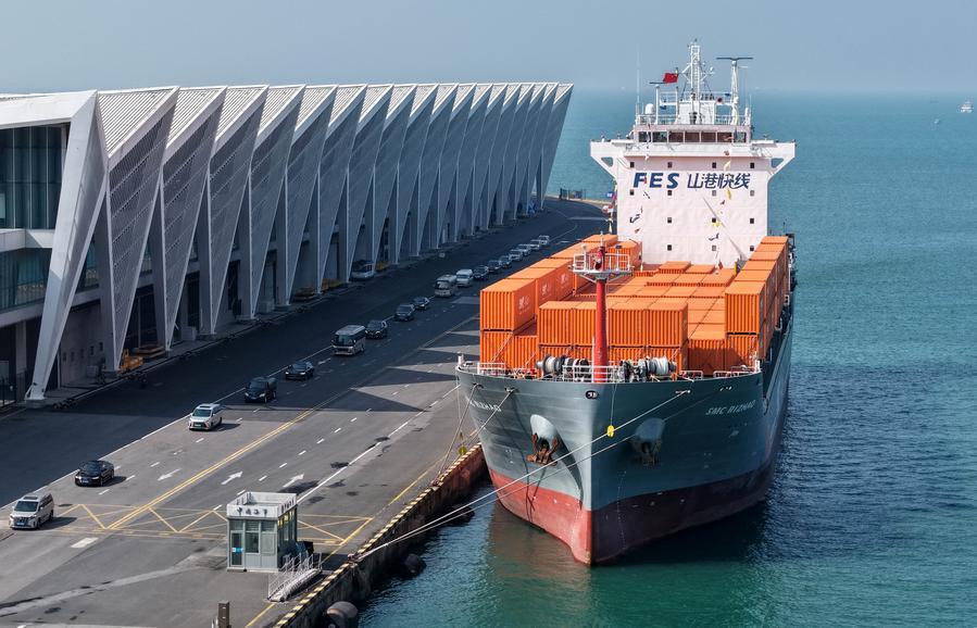 (중국 칭다오=신화통신) 한국 제주도의 첫 국제 컨테이너선 정기 노선이 16일 정식 운항을 시작했다. '칭다오(靑島)~제주' 컨테이너 노선은 중국 산둥(山東)성에 위치한 칭다오 크루즈모항에서 첫 출발을 알려 두 지역 간 '2일 무역권'을 구축했다는 평가다.