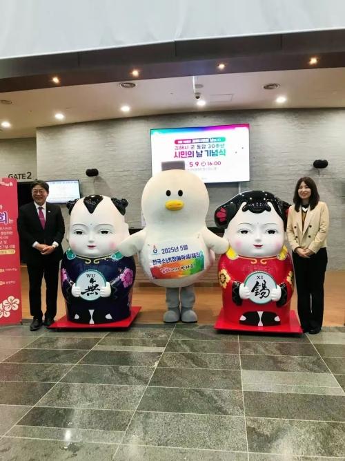 올 5월 우시는 김해시와의 우호 교류 30주년을 기념, 우시의 전통 문화를 대표하는 '아푸아시(阿福阿喜)' 진흙 조형물 한 쌍을 김해시에 전달했다. 이 선물은 우시의 특색 문화를 대표할 뿐만 아니라 우시와 한국 간 깊은 우정을 보여줬다.