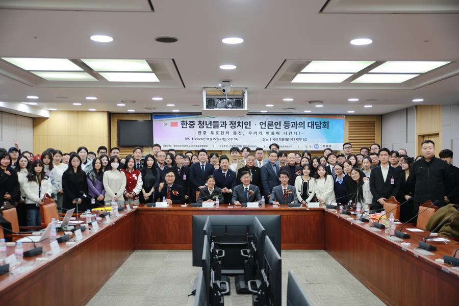 (서울=신화통신) '한∙중 청년들과 정치인∙언론인 등과의 대담회'가 27일 한국 국회의원회관에서 열렸다. 이번 대담회는 이상식 한국 국회의원과 한중글로벌협회가 공동 주최하고 한중청년연합과 한중글로벌포럼이 공동 주관했으며 김태년 한중의원연맹 회장과 주한 중국대사관 등이 후원했다.