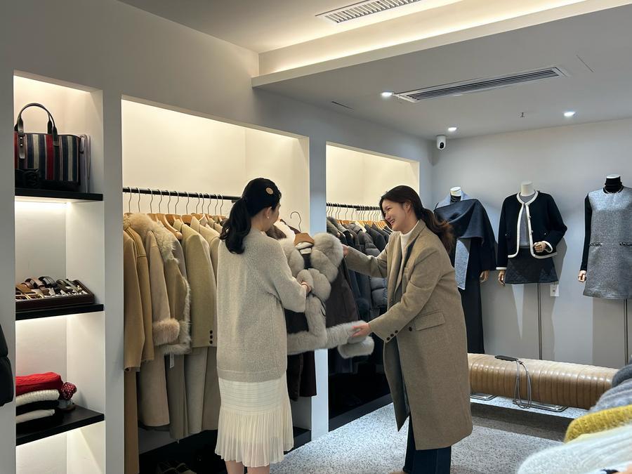 매장 운영자인 성하림 씨는 유창한 중국어로 손님에게 신제품을 소개하고 코디를 도와준다.