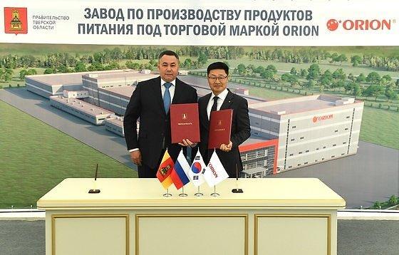 오리온은 지난 9일 러시아 트베리주 크립쪼바의 신공장 부지에서 투자 협정식을 가졌다고 10일 밝혔다.