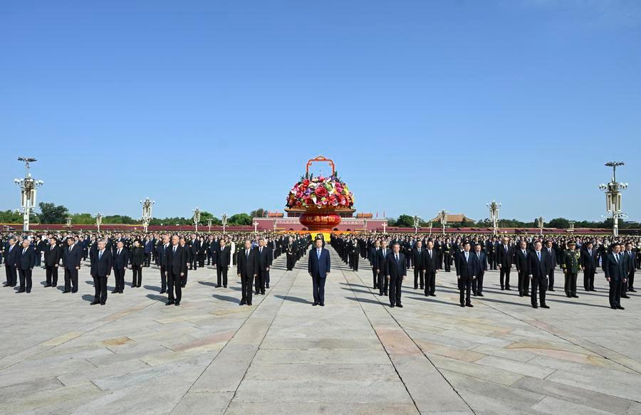 시진핑은 기념비 앞으로 걸음을 옮겨 꽃바구니의 리본을 세심하게 정리했다. 뒤이어 시진핑 등 당과 국가 지도자들은 천천히 걸음을 옮겨 인민영웅기념비를 참배했다.
