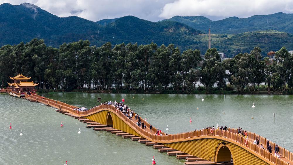(중국 쿤밍=신화통신) 1일 사람들이 윈난(雲南)성 둥펑(東風)댐 개폐식 부교에서 유람하고 있는 모습을 드론으로 내려다봤다. 이날 윈난성 쿤밍(昆明)시 뎬츠(滇池) 차오하이(草海)에 있는 둥펑댐 개폐식 부교가 정식으로 시민들에게 개방됐다. 이 개폐식 부교의 전체 길이는 약 514m, 교량 폭은 3m로 행인, 유람선 통행 등 다양한 수요를 충족시킨다. 2025.10.1 Copyright © 이코노믹데일리, 무단전재·재배포 금지 좋아요0 화나요0 추천해요0