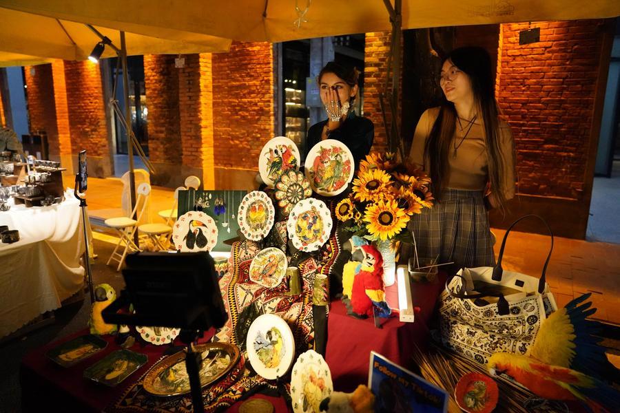 (중국 난창=신화통신) 헝가리 부다페스트에서 열린 중국 브랜드 상품 전시회에서 중국 도예 예술가 차이원쥐안(蔡文娟)이 디자인한 도자기 스피커, 커피잔이 전시되자마자 완판됐다. 그는 원나라 홍록채(紅綠彩) 기법을 이용해 헝가리인들이 사랑하는 제라늄을 도자기에 새겨 넣음으로써 현지인들의 각광을 받았다.