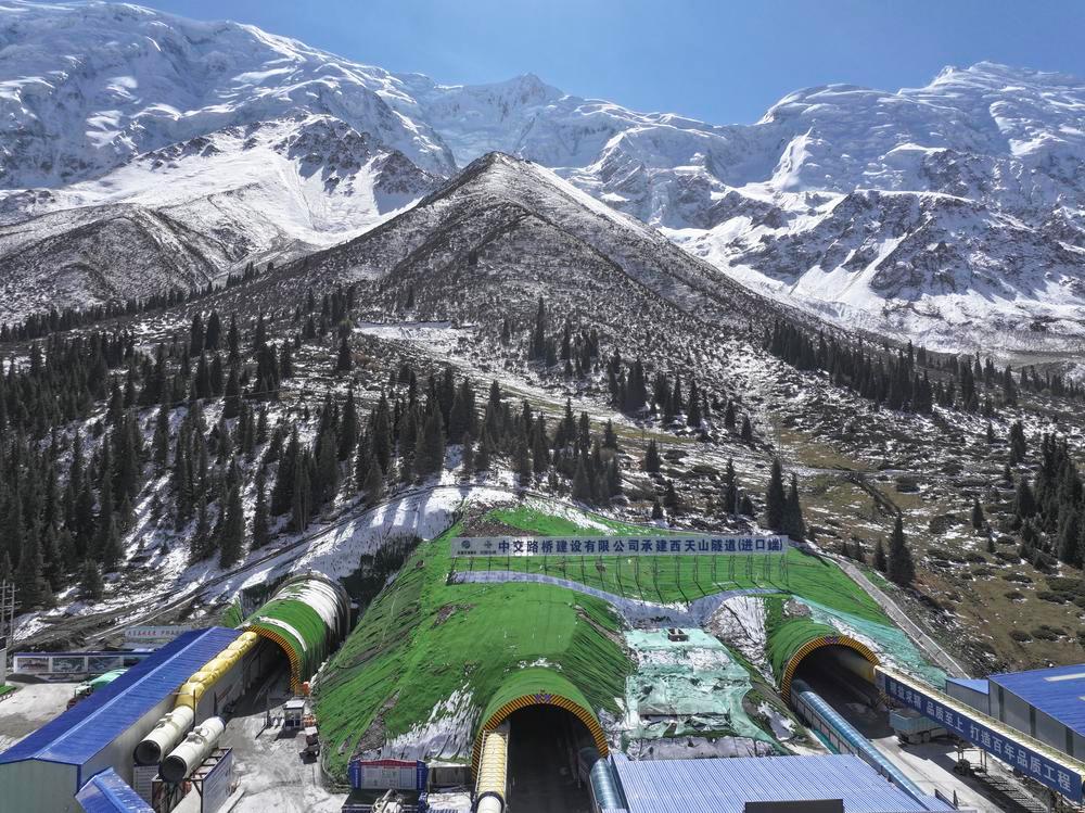 (중국 자오쑤=신화통신) 5일 드론으로 촬영한 자오쑤(昭蘇)~원쑤(溫宿) 고속도로 서톈산(天山) 장대터널 입구. 자오쑤~원쑤 구간인 자오원(昭溫) 고속도로는 신장(新疆)위구르자치구 톈산(天山)을 관통하는 국도 219선의 핵심 구간으로, 신장(新疆) 서부에서 톈산 남북을 잇는 중요 통로다. 오는 2027년 10월 말 해당 프로젝트가 완공되면 이닝(伊寧)시와 아커쑤(阿克蘇)시가 직통돼 두 지역 간 거리가 445㎞로 단축된다. 2025.10.6
