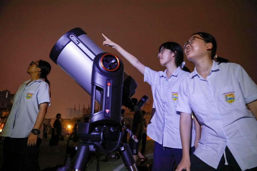 6일 상하이시 훙커우(虹口)구 빈강(濱港)상업센터 전망대에 설치된 꽃등을 감상하는 시민들. (사진/신화통신)장쑤(江蘇)성 하이안(海安)고등학교 천문동아리 학생들이 6일 운동장에서 달을 관측하고 있다. (사진/신화통신)6일 베이징 난뤄구샹(南鑼鼓巷)을 거닐고 있는 관광객. (사진/신화통신)6일 장쑤(江蘇)성 장인(江陰)시 신시대문명실천센터에서 아이들이 부모님과 함께 월병을 만들고 있다. (사진/신화통신)6일 헤이룽장(黑龍江)성 하얼빈(哈爾濱)시 빙설대세계에서 펼쳐진 드론 공연을 촬영하고 있는 사람들. (사진/신화통신)6일 광둥(廣東)성 산터우(汕頭)시의 한 관광지에서 함께 공연을 펼치는 로봇과 공연자. (사진/신화통신)