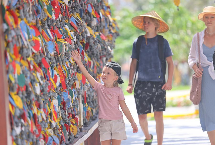 7일 관광객이 하이난(海南)성 싼야(三亞)시 난산(南山)문화관광구를 둘러보고 있다. (사진/신화통신)