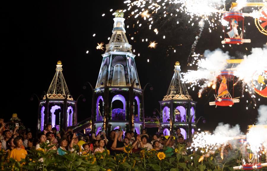 7일 상하이 치지(奇蹟)화원에서 불꽃놀이를 감상하는 관광객. (사진/신화통신)