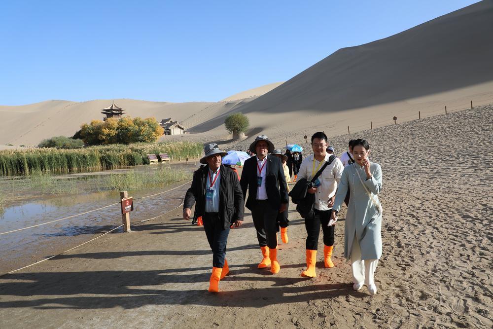 (중국 둔황=신화통신) 12일 간쑤(甘肅)성 둔황(敦煌)시 밍사산(鳴沙山) 웨야취안(月牙泉) 관광지를 둘러보는 해외 귀빈. 지난 11~12일 '세계 시장(市長) 대화∙둔황' 행사에 참석한 아르메니아∙이탈리아∙터키 등 국가의 귀빈들이 세계문화유산 막고굴(莫高窟) 등 랜드마크를 방문해 천년 둔황의 역사를 직접 체감했다. 2025.10.12 Copyright © 이코노믹데일리, 무단전재·재배포 금지 좋아요0 화나요0 추천해요0