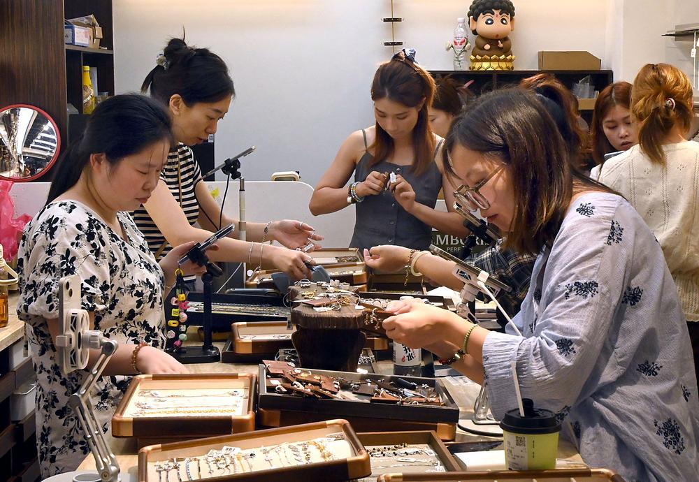 (중국 이우=신화통신) 14일 저장(浙江)성 이우(義烏) 국제상무성 1구역 시장을 찾은 관광객들이 장신구를 고르고 있다. 이우시는 저장성 중부에 위치한 국내외 쌍순환(雙循環)의 핵심 도시다. 이우는 시장 육성∙발전∙고도화를 중심으로 지역 특색이 뚜렷한 발전의 길을 걸어왔다. 현재 이우 시장 면적은 640만㎡ 이상으로 세계 최대의 상품 도매시장으로 불린다. 2025.10.15 Copyright © 이코노믹데일리, 무단전재·재배포 금지 좋아요0 화나요0 추천해요0
