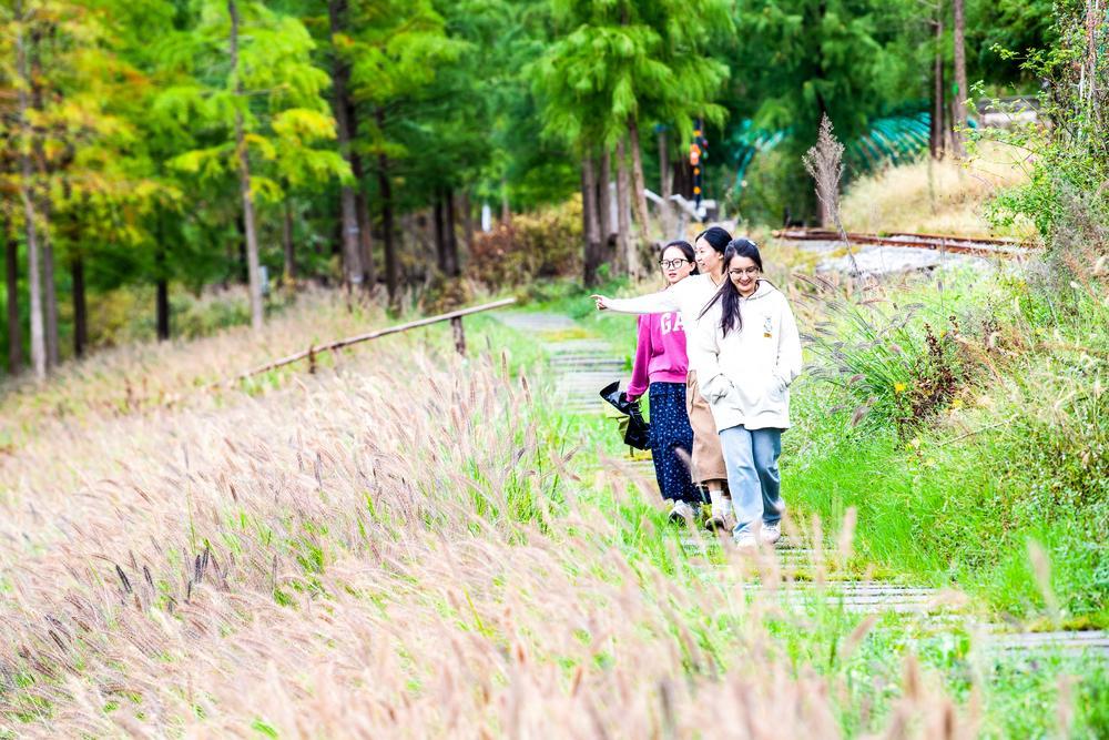 (중국 충칭=신화통신) 15일 습지공원 내 호숫가에서 산책 중인 관광객들. 충칭(重慶)시 스주(石柱)현 차오터우(橋頭)진은 우링산(武陵山)을 품은 지역으로 국가 습지공원을 보유해 아름다운 경치를 자랑한다. 최근 수년간 차오터우진은 천혜의 자연 자원을 바탕으로 '농업+문화+관광'이 결합된 새로운 비즈니스 모델을 개발했다. 아울러 농촌의 유휴 자산을 효과적으로 활용해 농촌 진흥에 새로운 동력을 불어넣었단 평가를 받는다. 2025.10.15