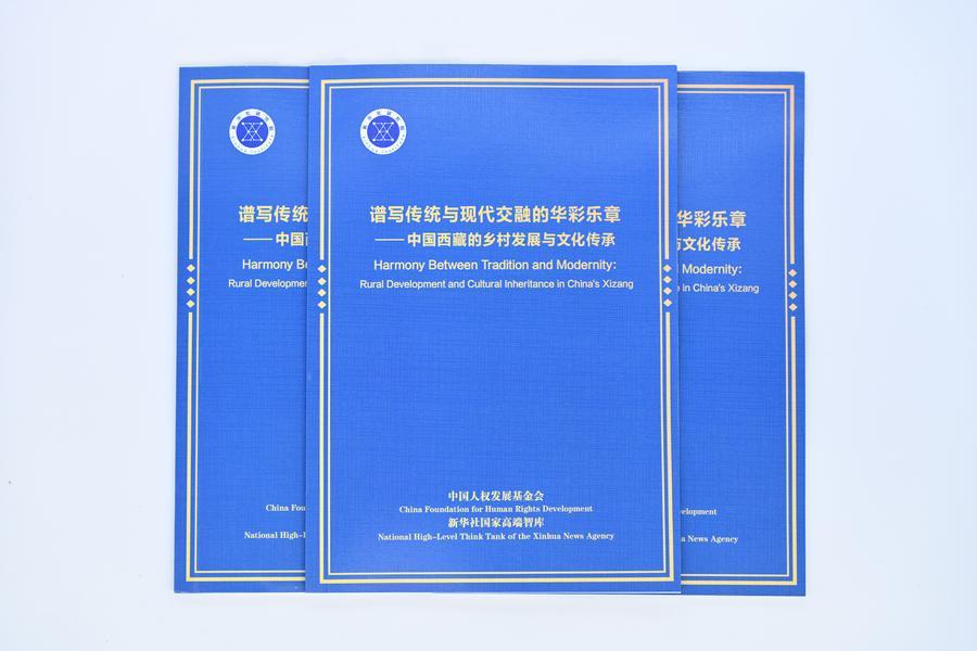 (베이징=신화통신) 중국인권발전기금회와 신화통신 국가고급싱크탱크(NCR)가 16일 베이징에서 '전통과 현대 융합의 화려한 악장을 쓰다-중국 시짱(西藏)의 향촌 발전과 문화 전승' 중·영문 싱크탱크 보고서를 공동 발표했다.
