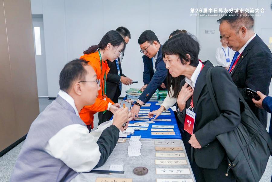 중·일·한 3국은 지리적으로 인접하고 문화적으로도 서로 연결돼 있다. 매년 열리는 '중·일·한 우호도시 교류 대회'는 경제무역 협력을 촉진하는 동시에 3국이 문화 교류를 펼칠 수 있는 무대를 제공하고 있다. 이번 대회 기간 주최 측은 회의장 외부에 상대방 문화를 직접 체험할 수 있는 3국 문화 체험구역을 설치했다.