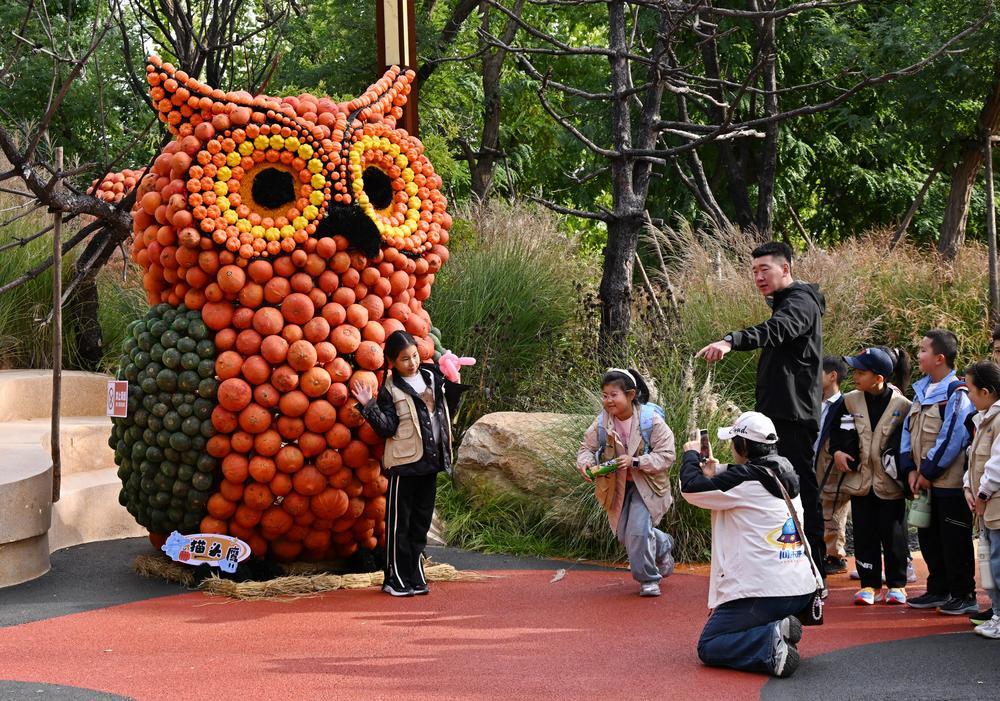 (중국 칭다오=신화통신) 18일 체험학습 온 어린이들이 '호박 부엉이'와 기념사진을 찍고 있다. 산둥(山東)성 칭다오(青島)시 동방에덴원에서 '호박 예술 왕국' 테마전이 열리고 있다. 다양한 품종과 색상의 호박으로 만든 만화 캐릭터 모양의 조형물들이 관광지 안에 설치돼 관광객들의 발길이 이어지고 있다. 2025.10.19 Copyright © 이코노믹데일리, 무단전재·재배포 금지 좋아요0 화나요0 추천해요0