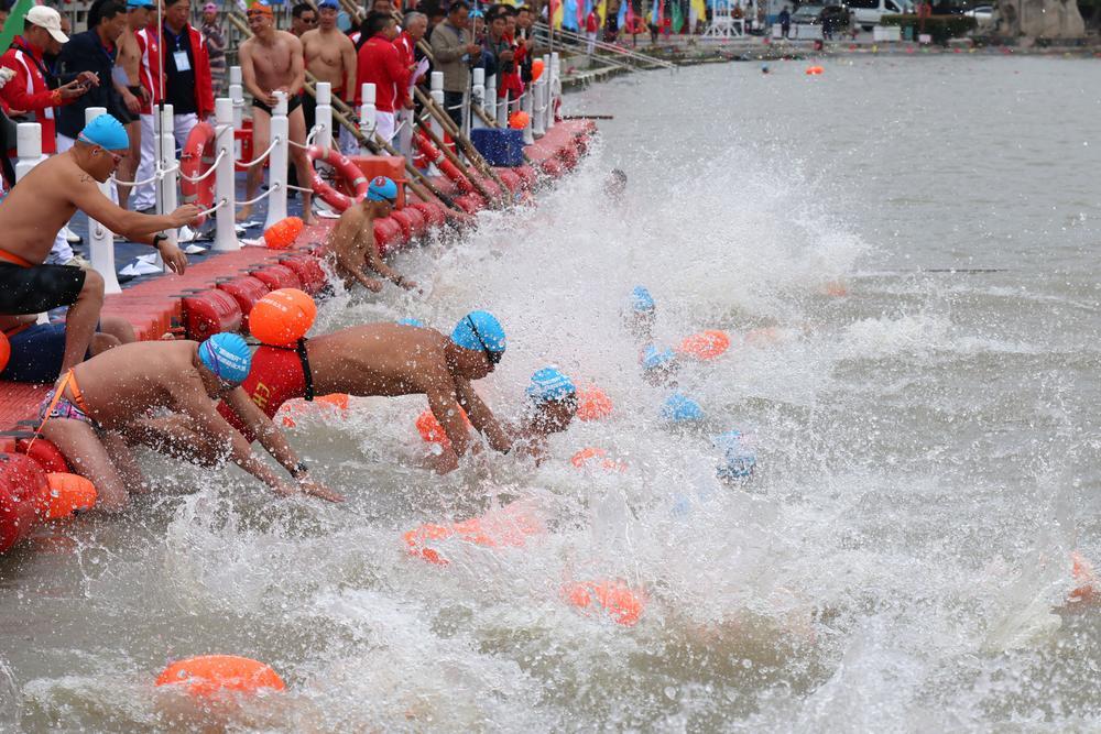 (중국 화이안=신화통신) 19일 장쑤(江蘇)성 화이안(淮安)시 훙쩌후(洪澤湖) 위런완(漁人灣)에서 수영 대회 참가 선수들이 입수를 하고 있다. 이날 '제3회 훙쩌후 수영대회 및 천인(千人) 게 미식회'가 훙쩌후 위런완에서 열렸다. 2025.10.19 Copyright © 이코노믹데일리, 무단전재·재배포 금지 좋아요0 화나요0 추천해요0