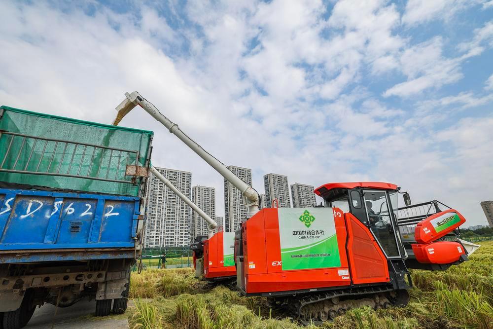 (중국 항저우=신화통신) 21일 콤바인이 수확한 벼를 차량에 싣고 있다. 수확의 계절 가을, 저장(浙江)성 항저우(杭州)시 스지톈위안(世紀田園)식량기능구역의 벼농사가 풍년을 맞이했다. 2025.10.21 Copyright © 이코노믹데일리, 무단전재·재배포 금지 좋아요0 화나요0 추천해요0
