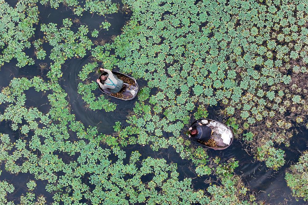 (베이징=신화통신) 절기상 서리가 내린다는 상강(霜降)을 앞두고 중국 각지의 들판과 밭에서 분주한 장면이 연출되고 있다. 22일 저장(浙江)성 후저우(湖州)시 취안신(泉心)촌에서 마름을 채취하는 주민을 드론에 담았다. 2025.10.22 Copyright © 이코노믹데일리, 무단전재·재배포 금지 좋아요0 화나요0 추천해요0