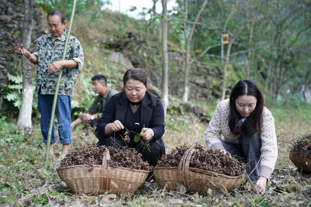 (중국 안캉=신화통신) 28일 과수 농민들이 산시(陝西)성 쉰양(旬陽)시의 한 호깨나무 열매 재배기지에서 호깨나무 열매를 수확하고 있다. '중국 호깨나무 열매의 고장'인 쉰양시의 대규모 재배밭이 수확기를 맞았다. 이에 따라 현지 호깨나무 열매 숲과 작업장은 수확 및 가공으로 분주한 모습을 보이고 있다. 쉰양시의 호깨나무 열매 생산량은 12만t(톤), 생산액은 3억4천만 위안(약 686억8천만원)에 달했다. 2025.10.29