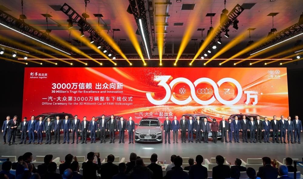 (중국 창춘=신화통신) 이치다중(一汽大衆∙FAW-폭스바겐)의 3천만 번째 완성차 출하식이 30일 지린(吉林)성 창춘(長春)시에서 열렸다. 이로써 이치다중은 생산 및 판매량이 중국 최초로 3천만 대를 돌파한 승용차 기업이 됐다. 이날 이치다중 3천만 번째 완성차와 함께 기념사진을 찍는 귀빈들. 2025.10.30 Copyright © 이코노믹데일리, 무단전재·재배포 금지 좋아요0 화나요0 추천해요0