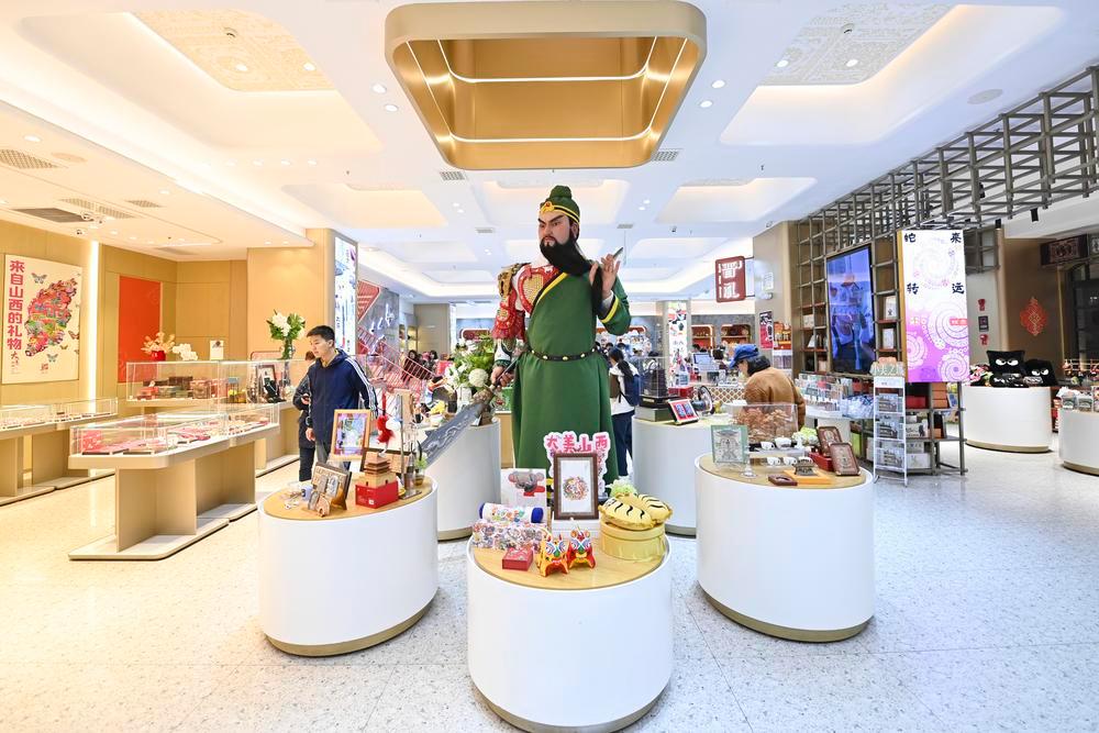 (중국 타이위안=신화통신) 관광객이 1일 산시(山西)성 타이위안(太原)시 종루(鐘樓)거리의 한 문화창의 매장에서 제품을 고르고 있다. 어둠이 깔리고 하나둘씩 등불을 밝히면 타이위안시 잉쩌(迎澤)구의 대표적 상업 거리이자 문화적 랜드마크인 종루거리는 북적이는 인파로 활기가 넘친다. 한때 시설 노후화, 공간 협소, 교통 정체 등 문제로 그 명성이 빛을 잃었으나, 지난 2020년 종루거리 구역 재개발 프로젝트를 추진한 결과 오래된 종루와 현대적인 조명, 라오쯔하오(老字號·오래된 전통 브랜드)와 트렌디한 매장이 나란한 전통과 현대가 어우러진 공간으로 탈바꿈했다. 올해 국경절 연휴 기간 관광객 약 90만 명(연인원)이 이곳을 찾을 정도로 도시의 명소가 된 것이다. 2025.11.2