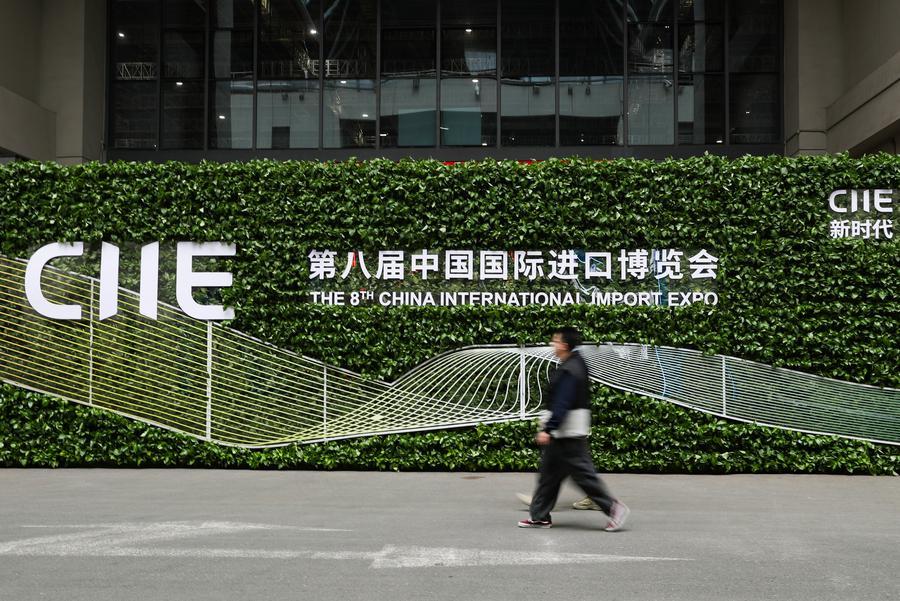 '제8회 중국국제수입박람회(CIIE)'의 주요 개최 장소인 국가컨벤션센터(상하이) 앞을 4일 한 행인이 지나가고 있다. (사진/신화통신)4일 '제8회 CIIE' 국가컨벤션센터(상하이) 남측 광장의 CIIE 마스코트 진바오(進寶) 조형물. (사진/신화통신)'제8회 CIIE' 미디어 센터의 모습을 4일 카메라에 담았다. (사진/신화통신)'로봇 웨이터'가 4일 '제8회 CIIE' 미디어 센터에서 직원에게 생수를 건네고 있다. (사진/신화통신)4일 '제8회 CIIE' 식품·농산물 전시구역에서 음식을 만들고 있는 직원들. (사진/신화통신)4일 '제8회 CIIE' 의료기기·헬스케어 제품 전시구역에서 직원들이 라이브 방송을 진행하고 있다. (사진/신화통신)4일 '제8회 CIIE' 주요 개최 장소인 국가컨벤션센터(상하이)의 전경. (사진/신화통신)