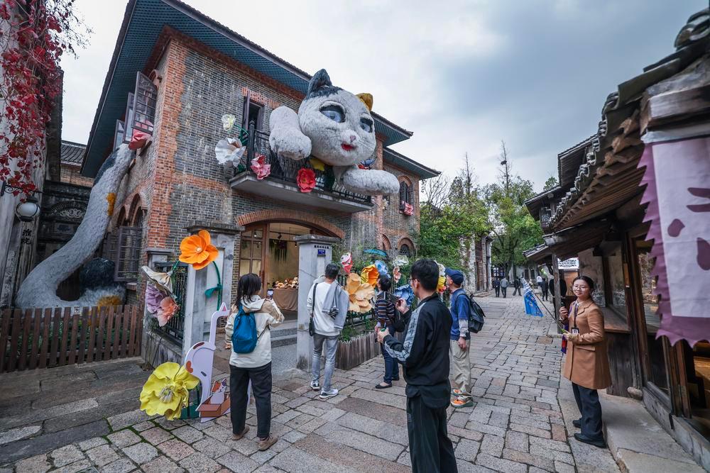 (중국 퉁샹=신화통신) 5일 저장(浙江)성 퉁샹(桐鄉) 푸위안(濮院) 패션 고진(古鎮)서 열린 '인터넷 라이프 카니발'에서 관광객들이 대형 동물 캐릭터 조형물을 살펴보고 있다. 5일 푸위안 패션 고진에서 '인터넷 라이프 카니발' 행사가 열렸다. 9일까지 이어지는 행사에는 ▷디지털·지능형 체험 ▷인공지능(AI) 제품 ▷스마트 홈 ▷트렌디한 브랜드 등 다양한 볼거리가 마련됐다. 2025.11.5