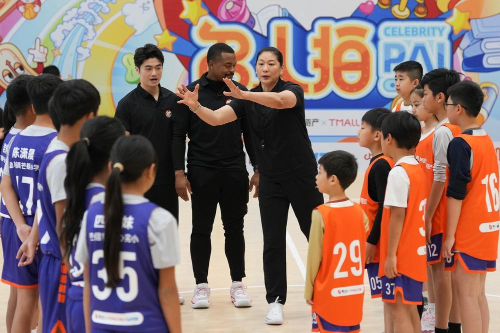 (중국 항저우=신화통신) 9일 항저우(杭州) 알리바바 시시(西溪)단지에서 '대가(大家) 농구 트레이닝 클래스'가 열렸다. 리신(李昕) 중국 여자 농구 청소년 대표팀 감독이 메인 코치를 맡았고 전 농구선수인 야오밍(姚明)이 특별 참관인 자격으로 수업에 함께했다. 클래스에서 공익 경매를 통해 모금된 기금은 중국 중서부 지역 농촌 학교의 농구 보급 활동을 지원하는 데 사용될 예정이다. 이날 리신 감독(가운데)이 어린 선수들을 지도하고 있다. 2025.11.9