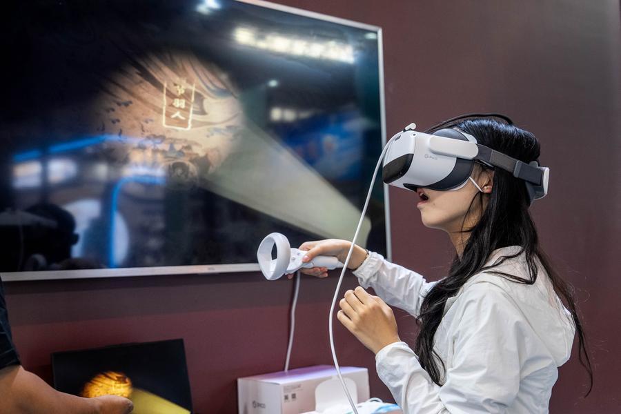 (중국 난징=신화통신) 가상현실(VR) 안경을 착용하고 진(秦)나라로 떠나는 시간여행, 우주복을 입고 '화성 기지' 테마 공간의 모의 캡슐을 타고 수행하는 우주 탐사 미션...중국 각지에서 '테크 관광'이 인기를 끌고 있다.