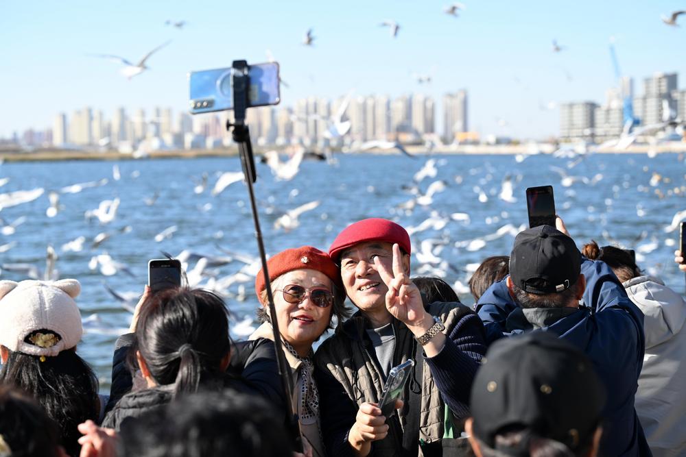 (중국 톈진=신화통신) 13일 하이허(海河)에서 갈매기 떼를 배경으로 기념사진을 찍는 노부부. 초겨울을 맞아 갈매기 떼가 추운 시베리아에서 톈진(天津) 빈하이(濱海)신구를 찾았다. 이곳에 서식하는 갈매기는 약 1천 마리 이상으로 많은 관광객의 발길을 이끌고 있다. 2025.11.13 Copyright © 이코노믹데일리, 무단전재·재배포 금지 좋아요0 화나요0 추천해요0