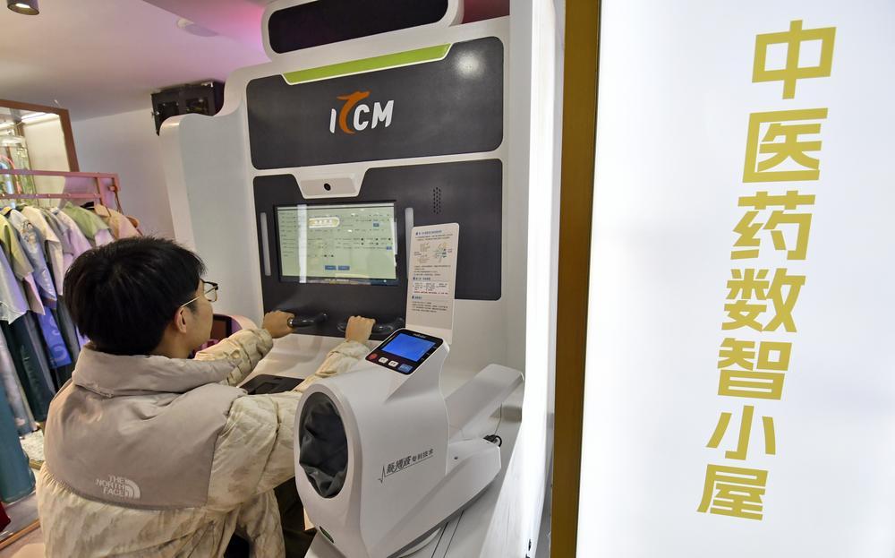 (베이징=신화통신) 13일 베이징 퉁런탕(同仁堂) 다스란(大柵欄)점에서 인공지능(AI) 기술을 융합한 중의약 디지털 체험 공간을 방문 중인 고객. 300여 년의 역사를 자랑하는 퉁런탕의 다스란점은 중의약 무형문화유산 전시 공간을 마련하고 다양한 중의약 문화창의 상품을 개발하는 동시에 중의약 디지털 체험 공간을 만들어 중국의 중의약 문화를 보여주는 전시 창구로서의 역할을 톡톡히 하고 있는 것으로 전해졌다. 2025.11.14