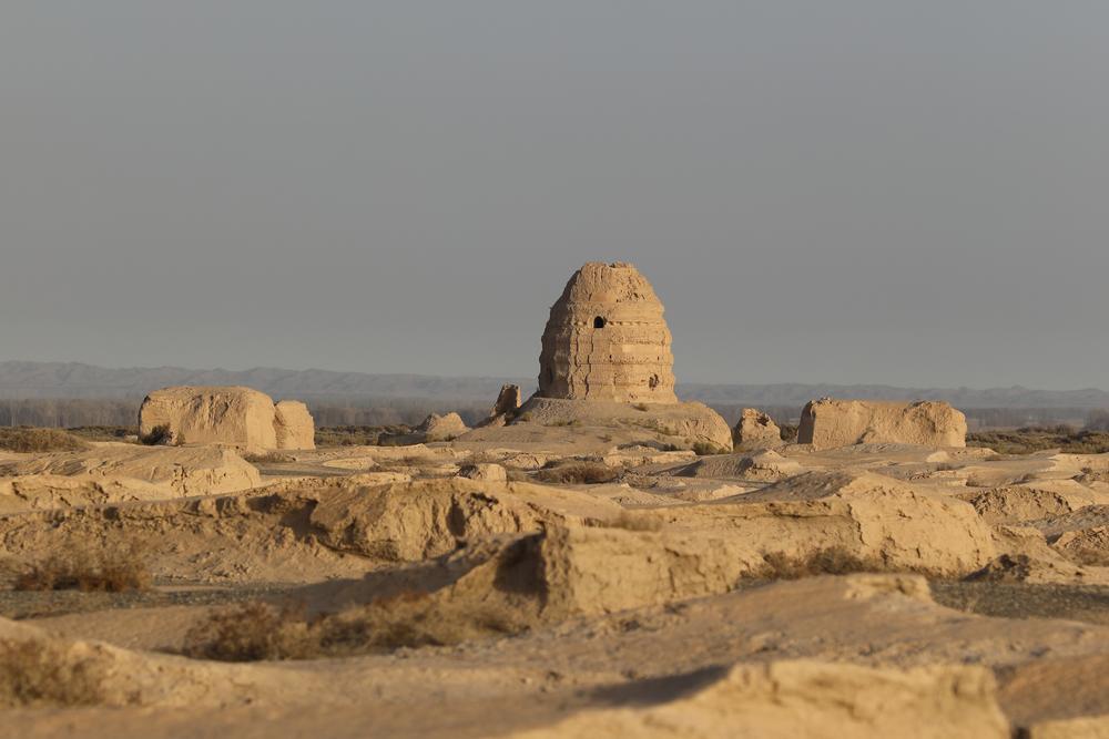 (중국 과저우=신화통신) 간쑤(甘肅)성 과저우(瓜州)현 쒀양청(鎖陽城)진의 동남쪽 고비사막에 위치한 쒀양청 유적은 실크로드의 중요 변방 요충지이자 교통 허브로 통한다. 성터, 사찰, 농업 관개 수로, 묘지군으로 이루어진 이곳은 지난 2014년 '실크로드: 창안(長安)-톈산(天山) 회랑 도로망' 유산 중 하나로 세계문화유산 목록에 등재됐다. 18일 드론으로 내려다본 과저우현의 탑이사(塔爾寺) 유적. 2025.11.19