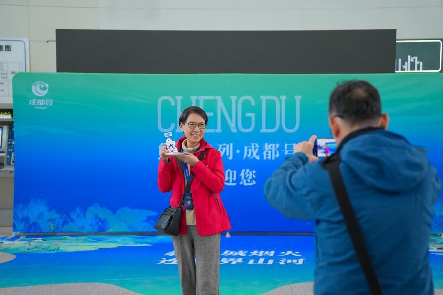 (중국 청두=신화통신) '판다 테마 열차·청두(成都)호'(이하 청두호)가 19일 오전 쓰촨(四川)성 광위안(廣元)역에 도착했다. 특별 테마 관광열차인 청두호의 탑승객 중 90% 이상이 입경 관광객이다. 그들은 이곳에서 반나절 머무르는 동안 검문촉도(劍門蜀道)를 둘러보고 중국 삼국 시대의 역사를 되돌아보며 무측천의 발자취를 따라가 본다. 이는 청두호 개통 이후 처음으로 운행되는 대(大)서남 순환 운행 열차 노선이다.