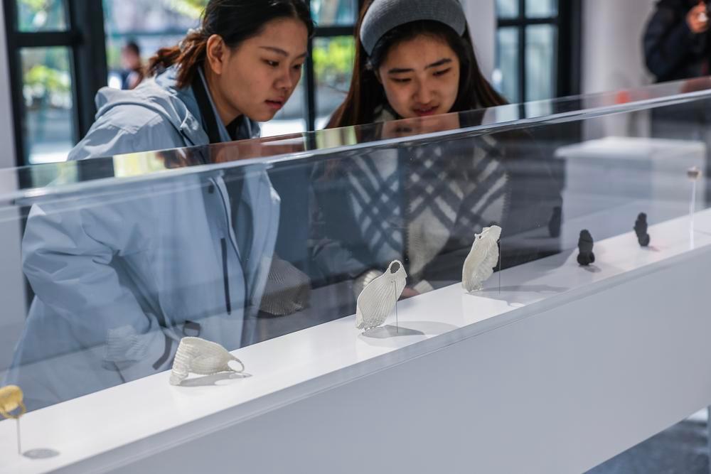(중국 퉁샹=신화통신) '제1회 푸위안(濮院) 국제 현대 장신구 예술·디자인 비엔날레'가 22일 저장(浙江)성 퉁샹(桐鄉)시 푸위안 패션 고진(古鎮)에서 열린다. 현장에는 중국·영국·네덜란드·독일·이탈리아·일본·한국·태국 8개국의 테마 전시홀이 마련된다. '예술+문화관광' 융합을 통해 푸위안 패션 고진의 전체 산업사슬을 활성화하며 관람객들에게 깊이 있는 예술 체험을 선사하겠다는 계획이다. 행사는 내년 2월 22일까지 이어진다. 21일 한국관 테마 전시홀을 둘러보는 관람객들. 2025.11.21