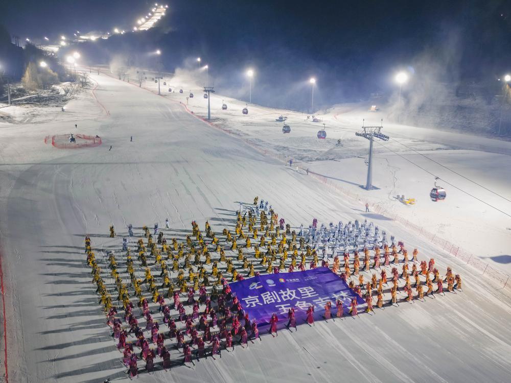 (중국 지린시=신화통신) 21일 밤 중국 경극 의상을 입은 260여 명의 스키어가 지린(吉林)성 지린(吉林)시에 위치한 중뤼(中旅) 쑹화후(松花湖)리조트에서 테마 활강쇼를 펼쳤다. 국수 예술과 빙설 스포츠를 결합한 이 공연은 고금이 어우러지는 시각적 향연으로 새로운 빙설 시즌의 열기를 고조시켰다. 이날 경극 의상을 입고 슬로프를 활강하는 스키어들을 드론으로 내려다봤다. 2025.11.22