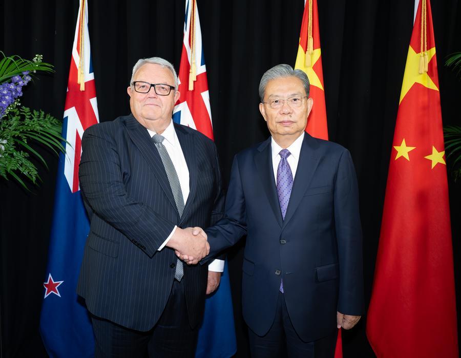 (웰링턴=신화통신) 자오러지(趙樂際) 중국 전국인민대표대회(전인대) 상무위원회 위원장이 게리 브라운리 뉴질랜드 하원의장의 요청에 응해 19~22일 뉴질랜드를 공식 친선 방문했다. 자오 위원장은 오클랜드와 웰링턴에서 각각 크리스토퍼 럭슨 뉴질랜드 총리, 브라운리 의장과 회견·회담했다.