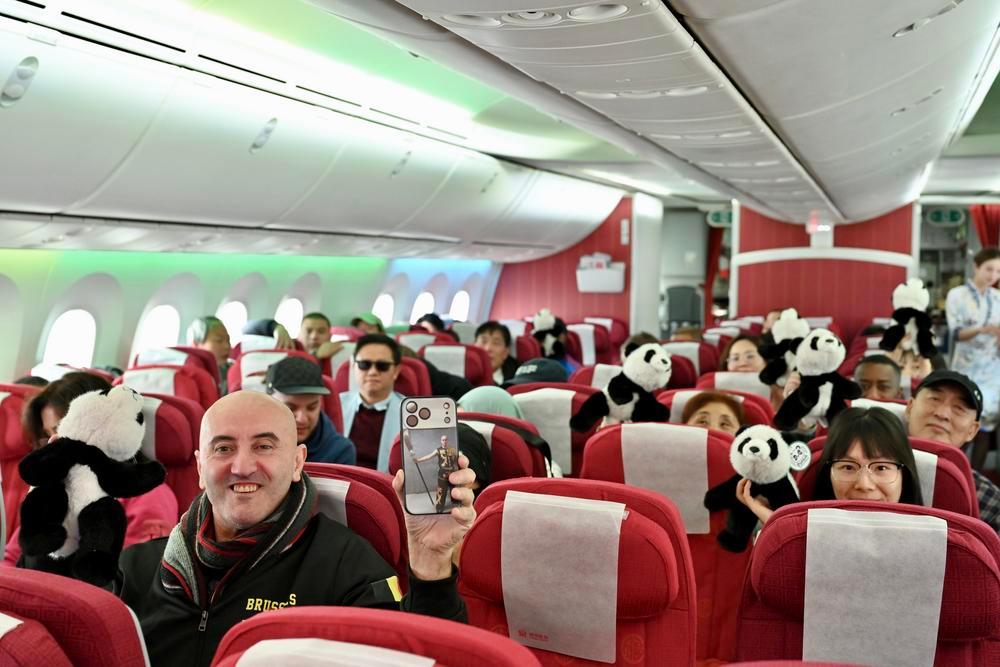 (브뤼셀=신화통신) 22일 벨기에 브뤼셀 국제공항에서 하이난(海南)항공 브뤼셀~충칭(重慶) 첫 직항편 탑승객들이 기념으로 받은 판다 인형을 들어 보이고 있다. 중국 하이난항공이 이날 브뤼셀~충칭 직항 노선을 정식 개통했다. 브뤼셀 국제공항은 첫 취항 행사를 열고, 차량 에스코트 의식을 통해 첫 항공편을 환송했다. 2025.11.23 Copyright © 이코노믹데일리, 무단전재·재배포 금지 좋아요0 화나요0 추천해요0