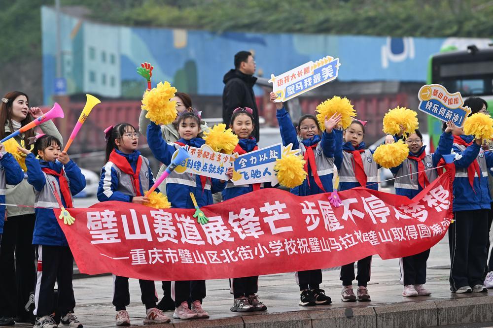 (중국 충칭=신화통신) 23일 충칭(重慶) 비산(璧山)마라톤 대회 참가자들을 응원하는 현지 초등학생들. 이날 2025 충칭 비산마라톤 대회가 충칭시 비산구 인민광장에서 열렸다. 2025.11.23 Copyright © 이코노믹데일리, 무단전재·재배포 금지 좋아요0 화나요0 추천해요0