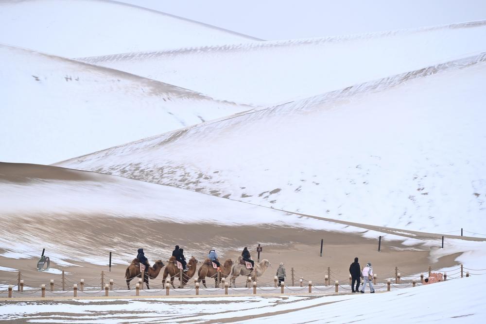 (중국 둔황=신화통신) 23일 간쑤(甘肅)성 둔황(敦煌)시 밍사산(鳴沙山) 웨야취안(月牙泉) 관광지를 둘러보고 있는 관광객들. 이날 밍사산 웨야취안의 황금빛 모래언덕 위로 하얀 눈이 쌓이며 이색적인 풍경이 연출됐다. 2025.11.23 Copyright © 이코노믹데일리, 무단전재·재배포 금지 좋아요0 화나요0 추천해요0