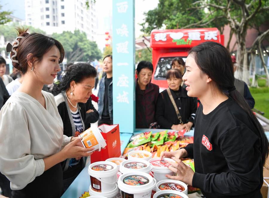 (중국 충칭=신화통신) 충칭(重慶)의 면 제품이 자국을 넘어 해외 시장에서도 인기를 끌고 있다.
