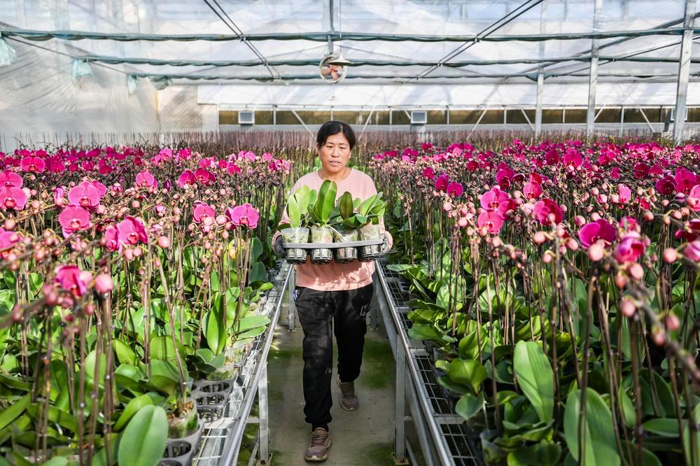 (중국 인촨=신화통신) 25일 닝샤(寧夏)회족자치구 인촨(銀川)시 싱칭(興慶)구에 위치한 농업 하이테크 스마트 시범 단지에서 화분을 옮기는 작업자. 최근 수년간 싱칭구는 풍부한 태양광 자원을 기반으로 특색 화훼 산업을 육성하면서 농업 하이테크 스마트 시범 단지를 건설해 겨울철 생산 능력을 향상시켰다. 화훼 재배 면적은 약 466㏊에 달하고, 연간 생산액은 약 1억6천만 위안(약 약 329억6천만원)으로 집계됐다. 2025.11.26