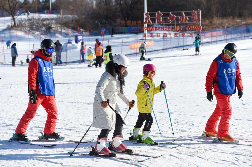 (중국 창춘=신화통신) 지린(吉林)성이 의무교육 학생을 대상으로 '빙설 방학'이 3일 정식으로 시작됐다. 3~7일 '빙설 방학' 기간을 맞아 지린성 내 스키장, 스케이트장, A급 관광지 등은 학생들이 빙설 스포츠를 만끽할 수 있도록 입장권 할인, 장비 렌털 할인 등 혜택을 마련했다. 이날 지린성 창춘(長春)시 톈딩산(天定山) 스키장에서 학생과 학부모가 함께 스키 레슨을 받고 있다. 2025.12.3