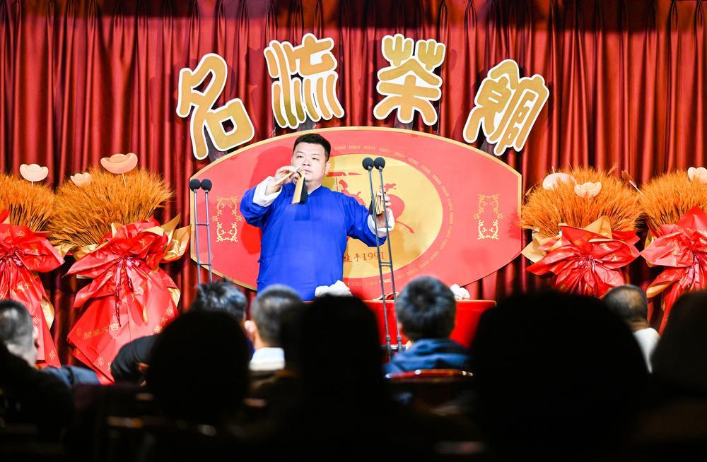 (중국 톈진=신화통신) 5일 톈진(天津)시 난카이(南開)구의 한 찻집에서 배우들이 설창(說唱)의 일종인 콰이반(快板) 공연을 선보이고 있다. 겨울이 깊어지자 톈진 샹성(相聲·중국식 만담) 소극장들이 열기로 가득 찼다. 극장 무대에서 펼쳐지는 전통 곡예가 시민들의 겨울 문화생활에 재미를 더해주고 있다는 평가다. 톈진에는 40여 개의 샹성 공연장이 있어 옛 거리의 오래된 찻집은 물론 쇼핑몰, 공원의 신설 극장에서도 공연이 펼쳐져 많은 관객들의 발길이 이어지고 있다. 2025.12.6