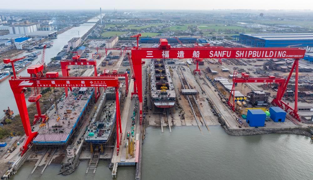 (베이징=신화통신) 연말을 맞아 중국 각지에서는 수주 물량 소화에 전력을 다하며 연간 목표 달성에 박차를 가하고 있다. 12일 여러 척의 대형 선박을 건조 중인 장쑤(江蘇)성 타이저우(泰州)시 가오강(高港)구에 위치한 타이저우 싼푸(三福)선박공정회사 생산기지를 드론으로 내려다봤다. 2025.12.12 Copyright © 이코노믹데일리, 무단전재·재배포 금지 좋아요0 화나요0 추천해요0