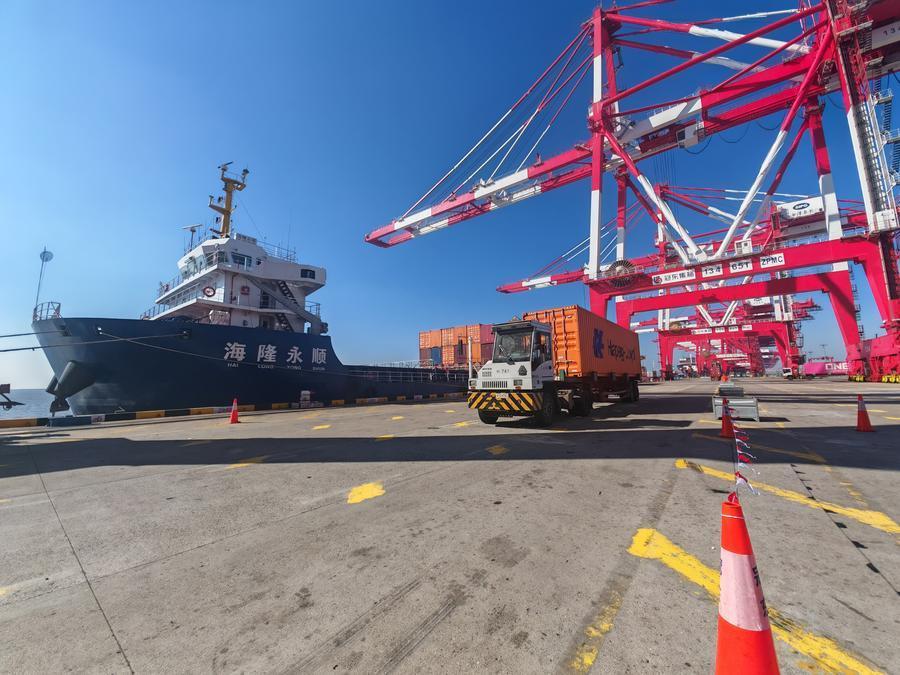 15일 새벽 안후이(安徽) 우후(蕪湖)항에서 출항한 컨테이너 화물선 '하이룽융순(海隆永順)'호가 갓 출하된 신에너지차를 싣고 상하이 양산(洋山) 3기 부두에 도착했다. 상하이와 안후이는 창장경제벨트 복합운송 센터 구축을 계기로 긴밀히 협력해 신에너지차 수출 효율화를 위한 '내륙수로~해상' 복합운송 통로인 '우후~상하이' 항로를 공식 개통했다.
