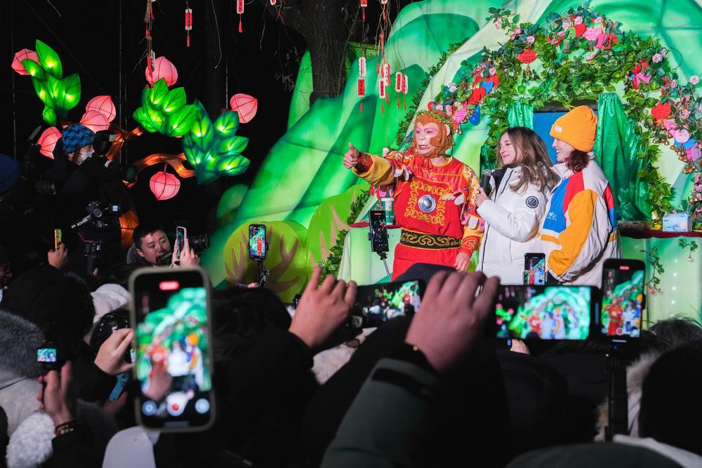 (중국 창춘=신화통신) 지난 17일 외신 기자들이 지린(吉林)성 창춘(長春)시 동식물공원에서 '서유기' 테마 공연 출연진과 상호작용하고 있다. 지린성 문화여유청이 주최한 'Hello 빙설 Go 지린' 국제 미디어 팸투어가 창춘시를 기점으로 시작됐다. 미국, 영국, 캐나다, 튀르키예, 베트남, 아제르바이잔, 인도네시아 등 20명의 외신 기자와 온라인 크리에이터들이 지린성 일대를 누비며 몰입형 빙설 문화관광 매력을 체험했다. 2025.12.19