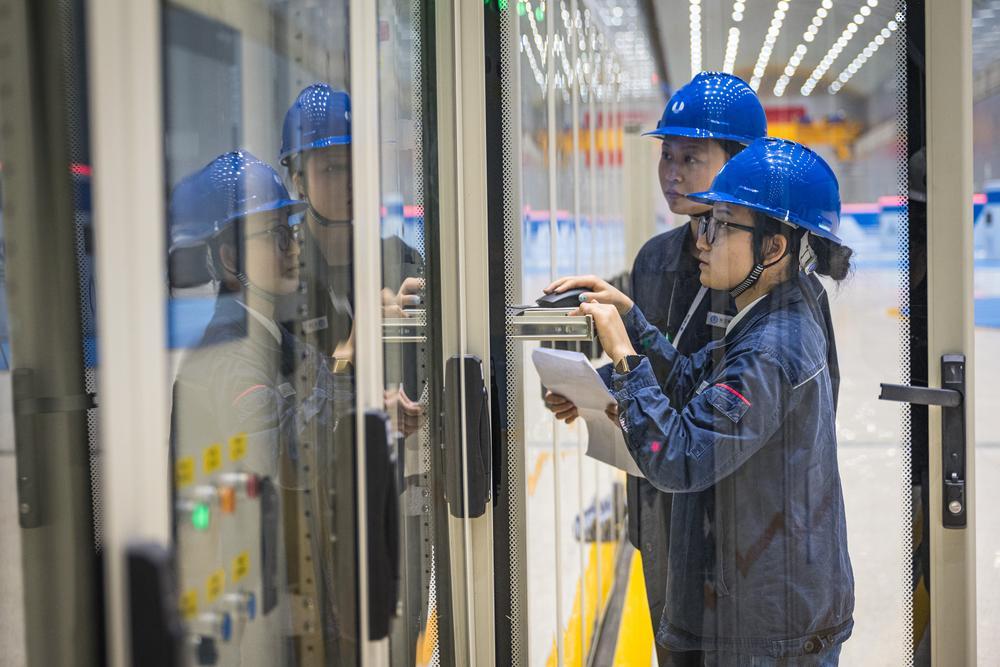 (중국 쿤밍=신화통신) 19일 바이허탄(白鶴灘)수력발전소 직원이 일상 순찰 업무에 몰두하고 있다. 윈난(雲南)성과 쓰촨(四川)성 경계를 지나는 진사(金沙)강에 위치한 바이허탄수력발전소와 우둥더(烏東德)수력발전소는 중국의 주요 '서전동송(西電東送·중국 서부 지역의 전력을 동부로 보내는 사업)' 기지다. 총 발전 설비 용량은 각각 1천600만㎾(킬로와트), 1천20만㎾(킬로와트)로 다른 수력발전소와 함께 세계 최대 청정에너지 '회랑'을 조성하고 있다는 평가다. 2025.12.20