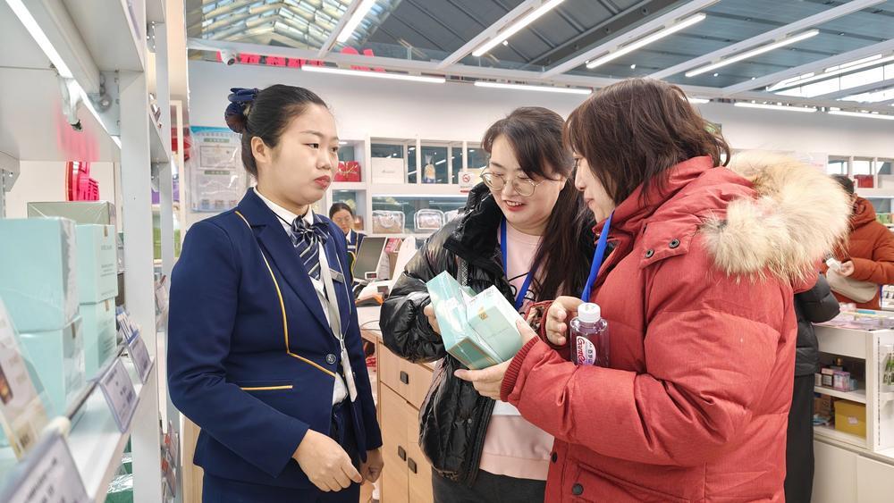 (중국 인촨=신화통신) 21일 닝샤(寧夏)회족자치구 인촨(銀川)기차역에 위치한 중국-유럽 화물열차 수입상품(보세)매장에서 상품을 구매하는 소비자. 인촨기차역 중국-유럽 화물열차 수입상품(보세)매장은 귀환하는 중국-유럽 화물열차를 통해 노선 인근 국가(지역)의 우수한 특색 상품을 국내로 수입하고 있다. 일반무역과 크로스보더 보세를 상호 융합한 교역 방식으로 다수의 관광객이 '일대일로' 이니셔티브의 혜택을 누리고 있다는 평가다. 2025.12.21
