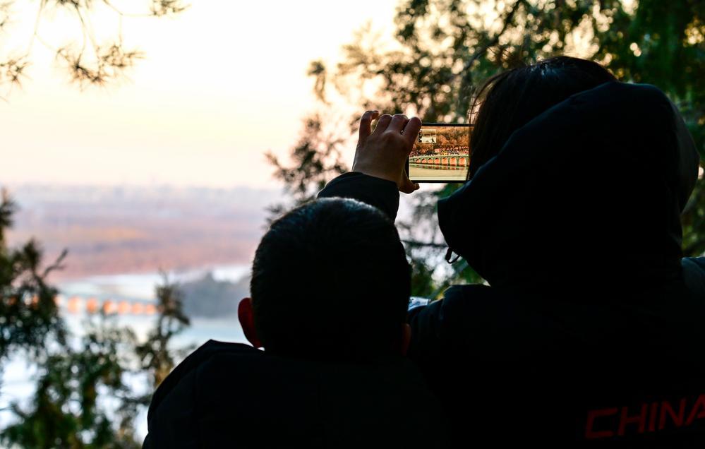 (베이징=신화통신) 21일 베이징 이화원(頤和園) 완서우산(萬壽山)에서 '금광천동(金光穿洞)'을 촬영하는 관광객. 절기상 동지(冬至)인 이날, 석양이 이화원 십칠공교(十七孔橋)를 비춰 뿜어져 나온 '금광천동'의 경관이 관광객과 사진 애호가의 발길을 이끌었다. 2025.12.21 Copyright © 이코노믹데일리, 무단전재·재배포 금지 좋아요0 화나요0 추천해요0