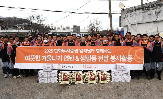 또한 한화투자증권은 취약계층의 겨울철 생활 안정을 위해 사단법인 해피피플에 방한용품과 생필품 등 총 3000만 원 상당의 물품을 전달했다. 이번 활동을 시작으로 겨울철 난방에 어려움을 겪는 이웃에 연탄 약 16000장을 추가로 후원할 계획이다.
