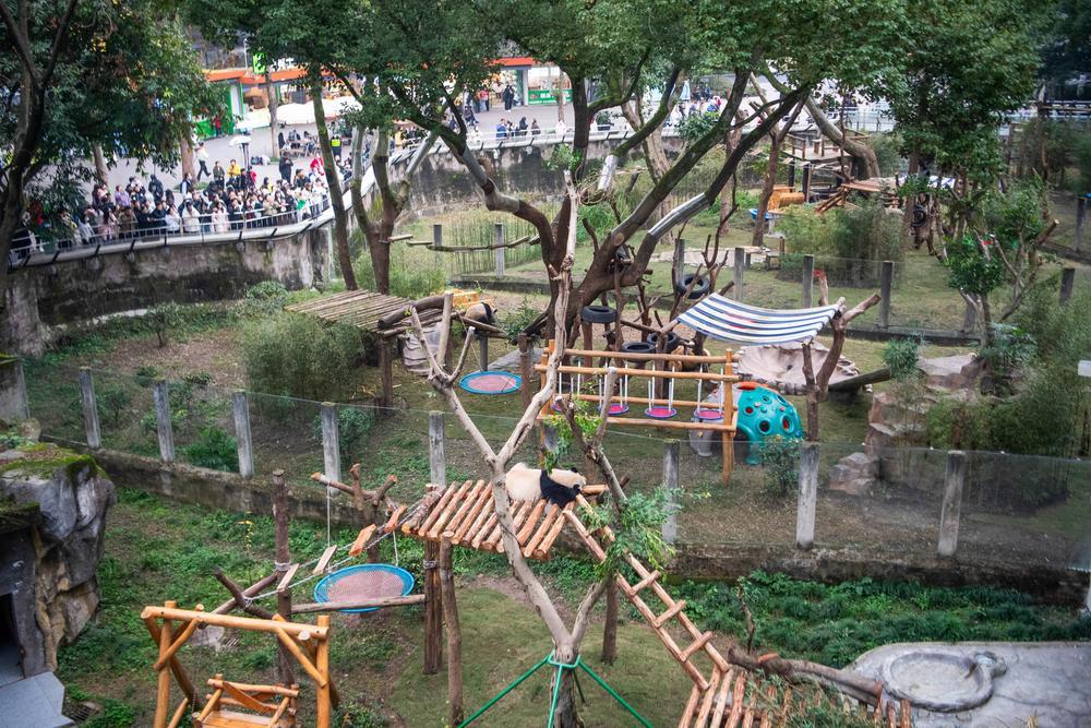 (중국 충칭=신화통신) 22일 충칭(重慶)동물원 자이언트판다관 하부 전시관이 시설 개조를 마치고 자이언트판다의 정식 입주를 맞이했다. 이번 개조 공사는 판다관 하부 전시관 내부 시설 일부를 업그레이드하고 사육 공간의 통풍 시설을 개선해 자이언트판다에게 보다 쾌적하고 건강한 생활 공간을 제공하고 관광객에게도 한층 향상된 관람 체험을 선사하게 됐다. 이날 판다관 하부 전시관에 입주한 자이언트판다가 새로운 환경에 적응하고 있다. 2025.12.22